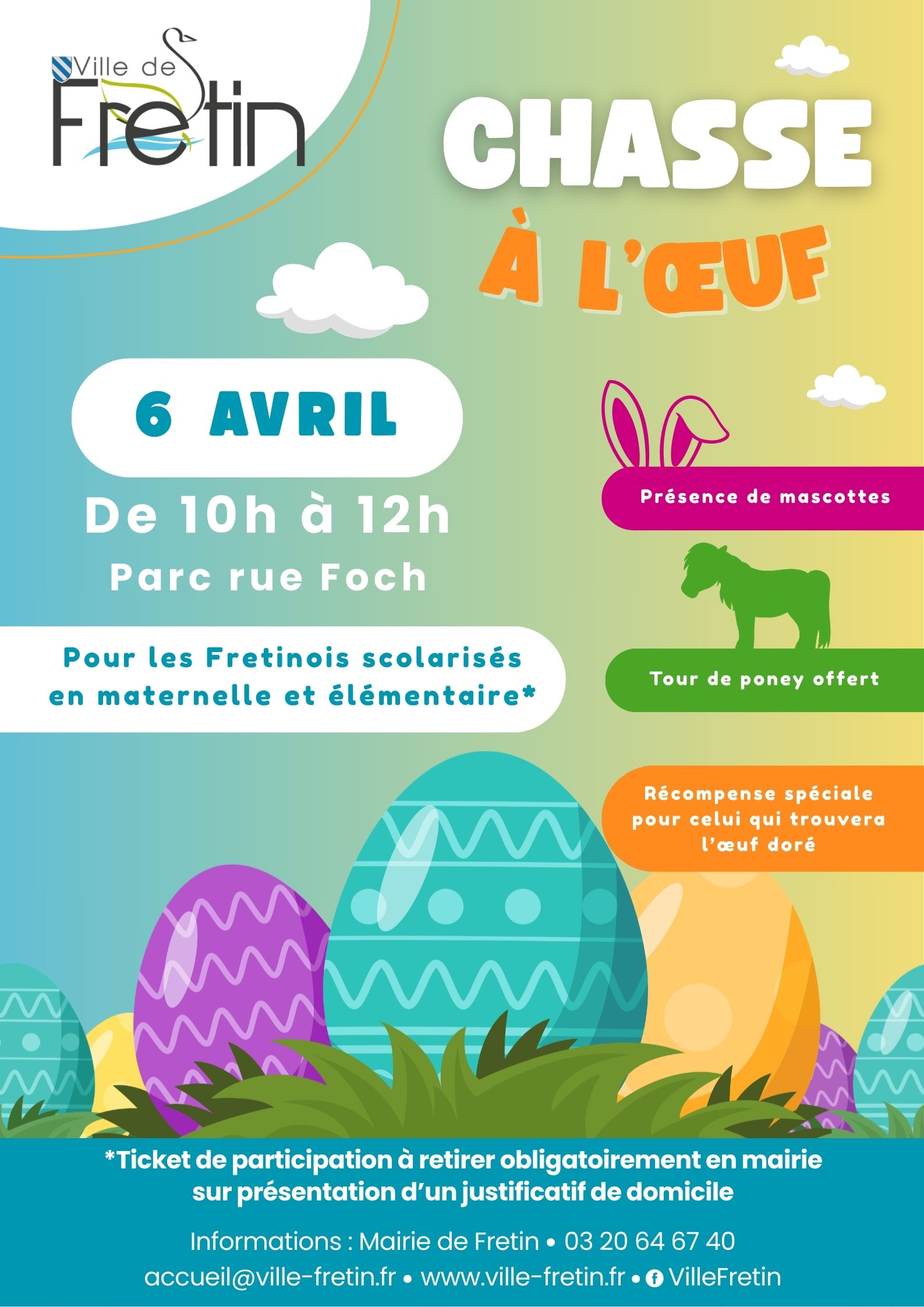 Pour participer à la Chasse à l’œuf, un ticket est à retirer obligatoirement en Mairie.