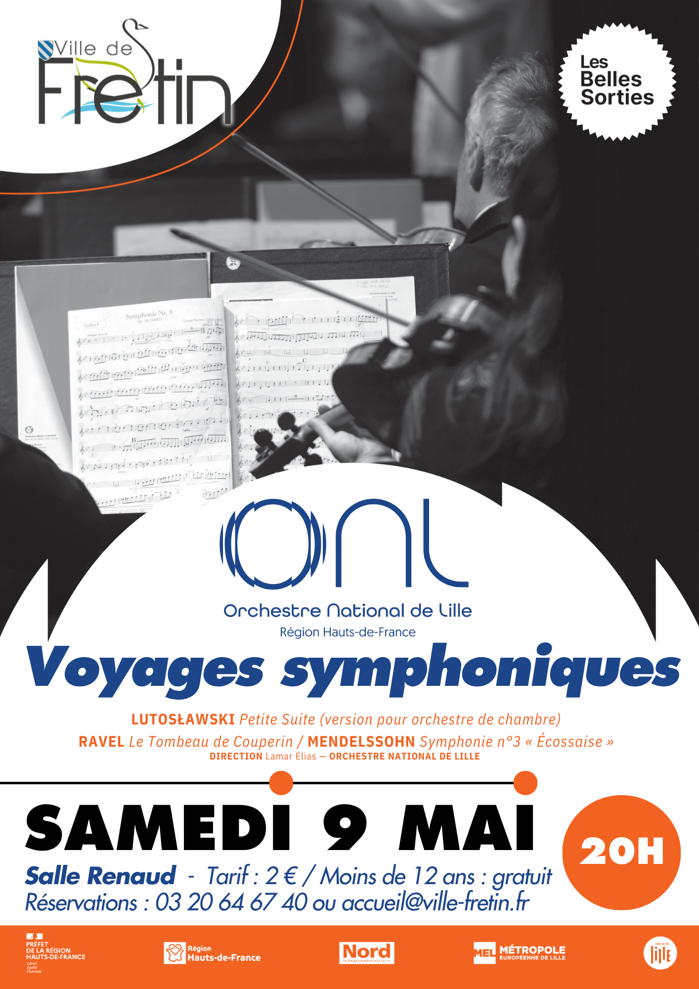 Dans le cadre des Belles Sorties de la MEL, la commune a l'immense privilège d'accueillir, le samedi 9 mai 2026 à 20h à la salle Renaud, l'Orchestre National de Lille. La soirée s'annonce exceptionnelle...